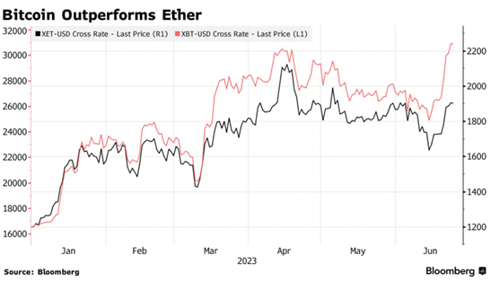 - Ether relatively underperformed Bitcoin this week; some industry analysts posited that the lack of definitive SEC statements regarding its status may have caused greater investor caution with the asset